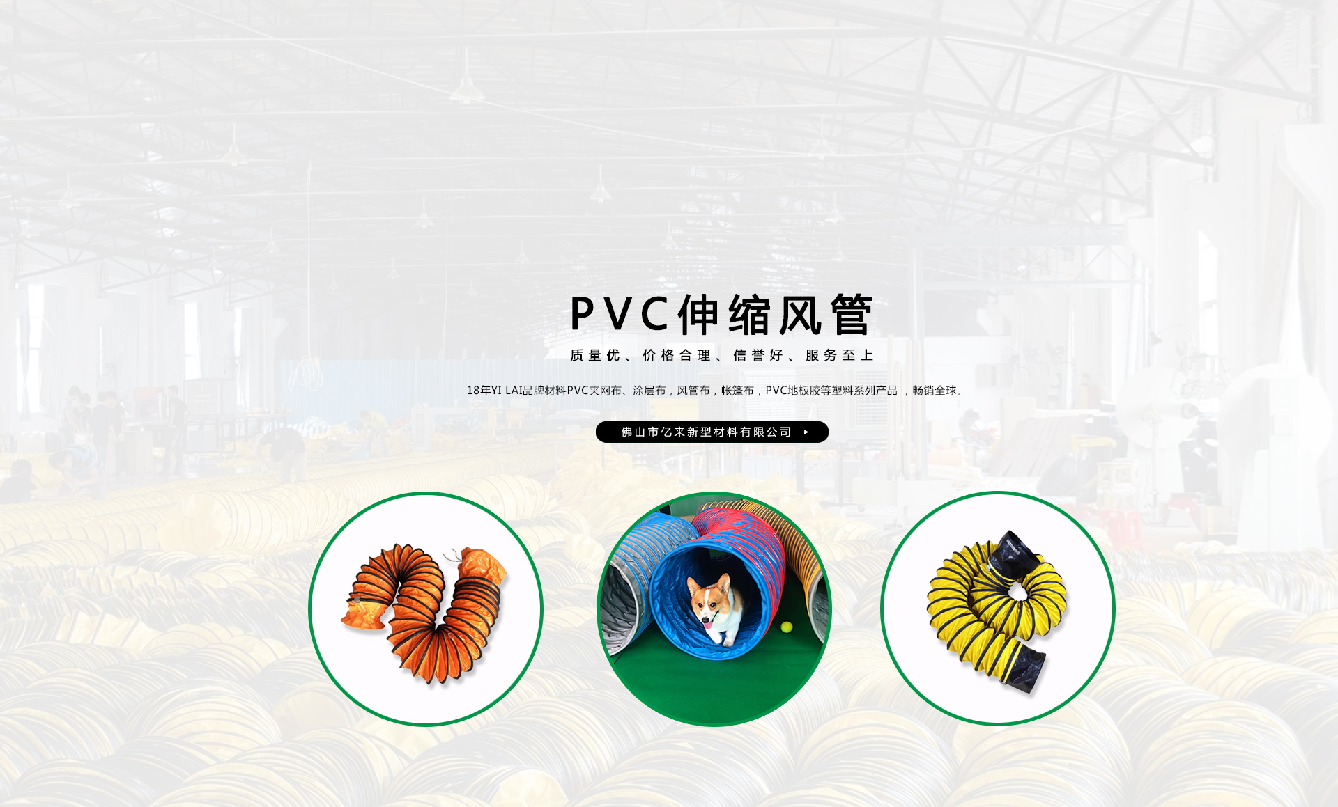 創(chuàng)建“YILAI品牌”近20年來(lái),產(chǎn)品質(zhì)量穩(wěn)定提高,生產(chǎn)及經(jīng)營(yíng)的產(chǎn)品包括PVC夾網(wǎng)布、PVC彩條布、PVC風(fēng)管布、PVC涂層布、PVC籬笆圍護(hù)欄布、PVC透明夾網(wǎng)布、PVC伸縮風(fēng)管、車(chē)縫風(fēng)管、寵物管、耐高溫風(fēng)管、地下室通風(fēng)管,保溫通風(fēng)管、空調(diào)排風(fēng)管、正負(fù)壓通風(fēng)管、三通/四通排風(fēng)管、防靜電風(fēng)管、隧道風(fēng)管、PVC地板膠等系列產(chǎn)品在市場(chǎng)上得到廣大客戶(hù)認(rèn)可,暢銷(xiāo)歐美、東南亞、非洲、中東等國(guó)外市場(chǎng)。
